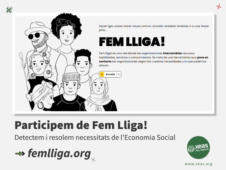 XEAS ha formalitzat la seua incorporació com a entitat participant al projecte “Fem Lliga! Nuevas metodologías para la mejora del trabajo en red de la Economía Social”, impulsat per la Cooperativa Transversal i finançat pel Ministeri de Drets Socials, Consum i Agenda 2030 dins el marc de les subvencions destinades a activitats relacionades amb la promoció i la implementació de l’Agenda 2030 per al Desenvolupament Sostenible a Espanya. Aquest projecte com ha explicat l’equip de la Cooperativa Transversal constitueix una aposta per innovar en les formes de col·laboració entre entitats de l’Economia Social i Solidària, aprofitant les possibilitats de les eines digitals i el treball en xarxa.